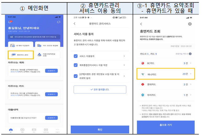 '내 카드 한눈에' 서비스 이용방법