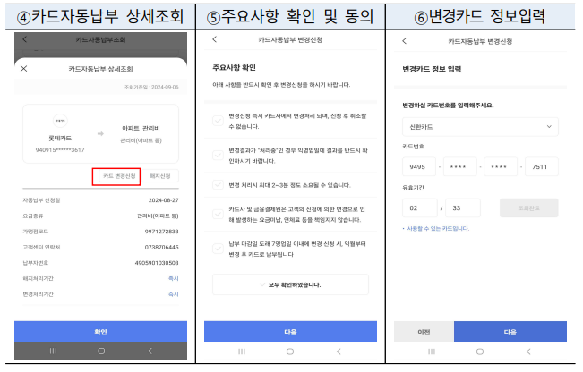 예를 들어, 아파트 관리비 자동납부를 취소해야 하는 경우 업데이트 내용이 즉시 반영되어 처리가 지연되는 일이 없습니다.