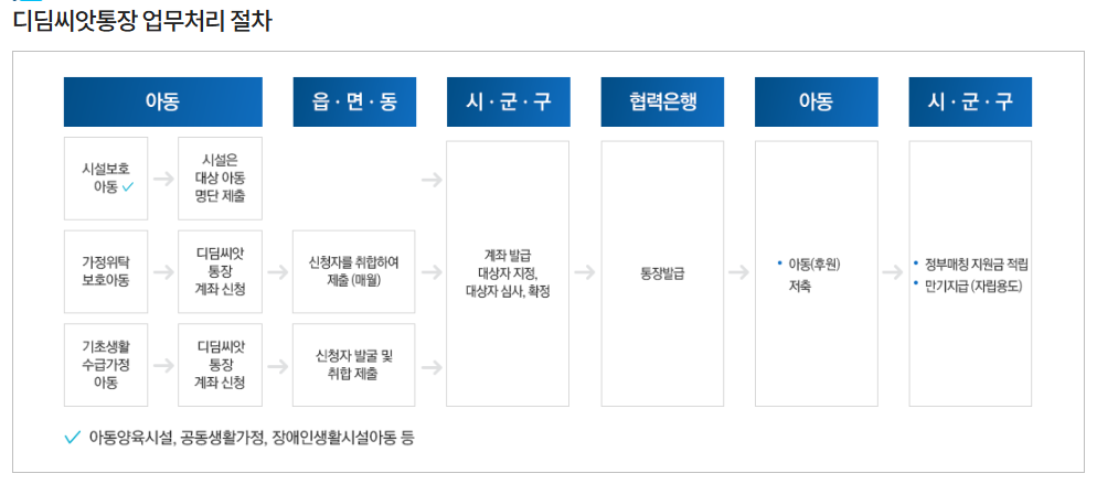 정부는 앞으로도 디딤씨앗통장을 통해 사회적 배려 대상 아동들의 삶의 질을 개선하고, 빈곤 대물림을 방지하며, 건강한 사회구성원으로 성장할 수 있도록 적극 지원할 예정입니다.