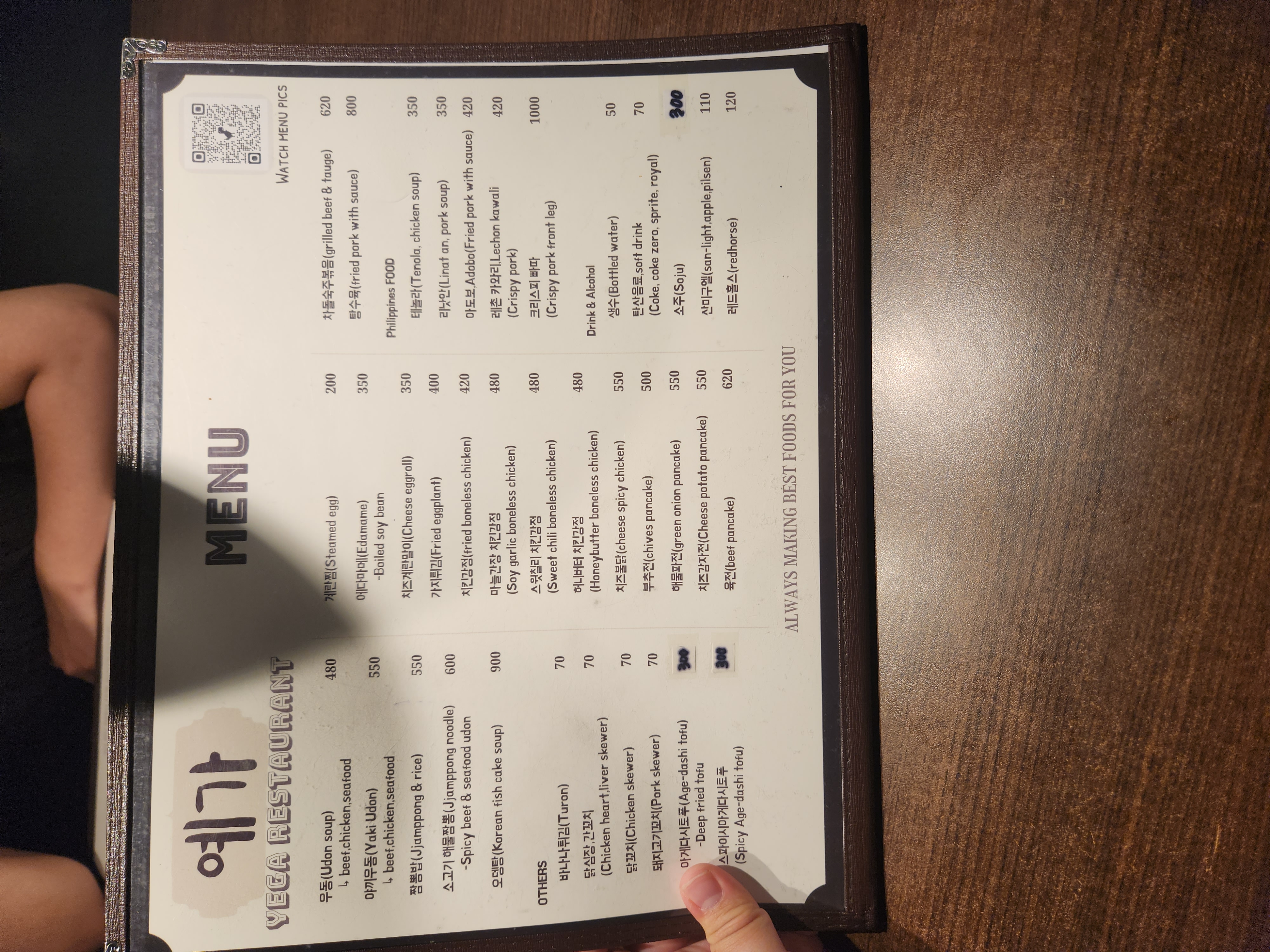 메뉴판이 한국말로 나와있어서 보기가 너무 좋더라구요