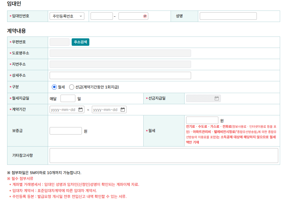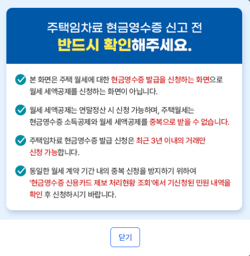3. 주택임차료 (월세)현금영수증 발급신청