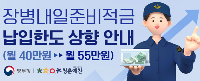 군대를 들어가면 금리가 좋은 장병적금을 가입하는 사람들이 대부분인데 납입한도가 상향되었다고 하니 모두 확인하시어 금액을 상향하여 넣으시는걸 추천드립니다.