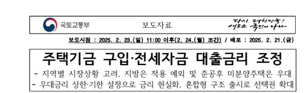 오늘은 국토교통부에서 발표한 보도자료를 토대로 주택기금 구입·전세자금 대출금리 조정 정책에 대해 자세히 알아보려고 합니다. 최근 부동산 시장의 변화와 금융 여건의 불안정 속에서 정부가 내 집 마련과 전세자금 대출 이용자들을 위해 내놓은 이번 정책은 많은 분들에게 큰 관심을 받고 있는데요, 그 내용을 하나하나 살펴보도록 하겠습니다.