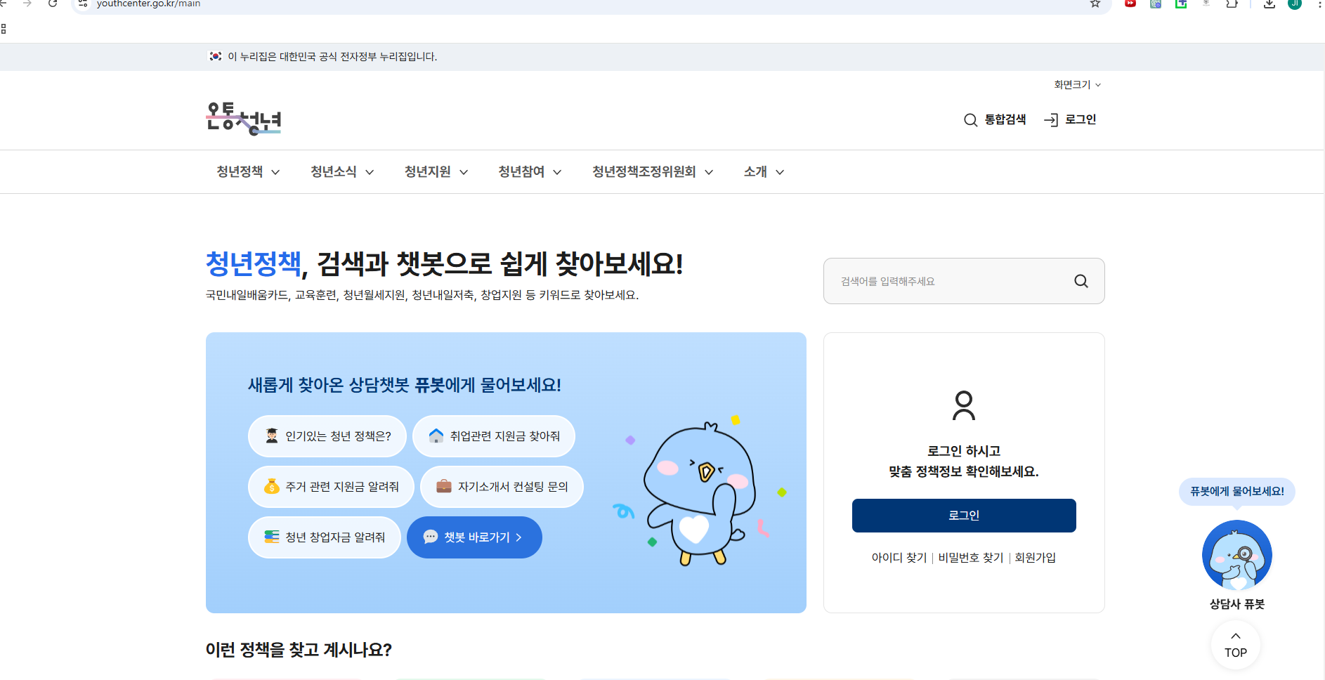 - 웹사이트 접속: 브라우저에서 youthcenter.go.kr 주소를 입력하여 접속합니다. 모바일 기기에서도 최적화된 화면으로 제공되어 언제 어디서나 이용이 가능합니다.