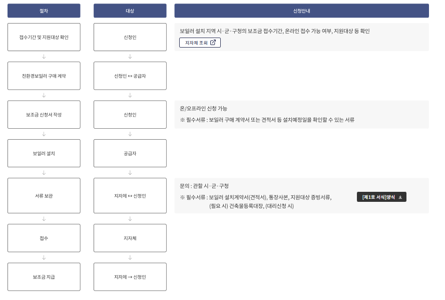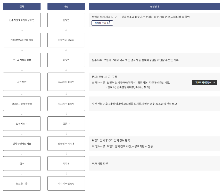 보일러 설치지역 지방자치단체의 보조금 신청공고기간