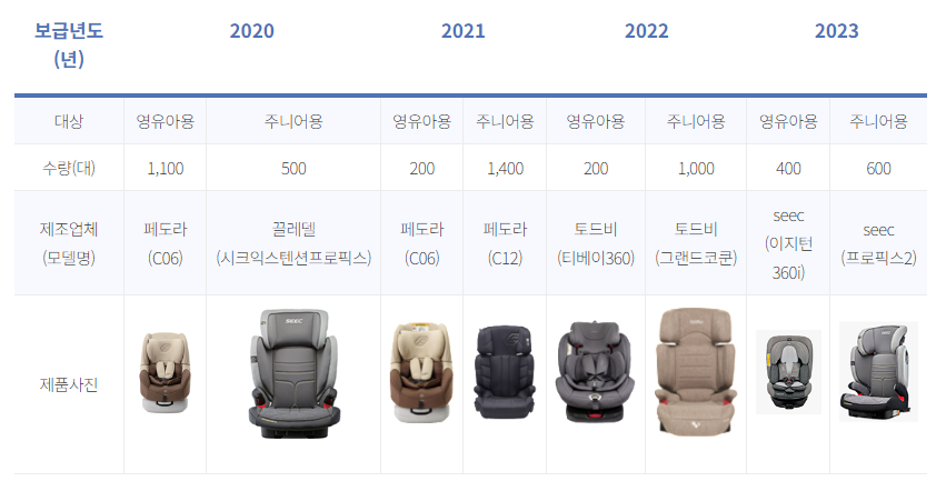 - 영유아용 카시트: 체중 4~18kg, 신청 대수 200대