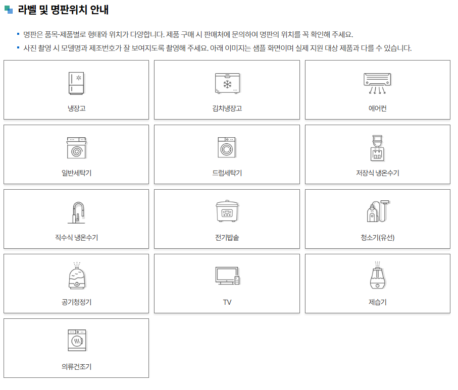 온라인, 오프라인 어디서 구매한 제품이든 가능하나 에너지 소비효율등급 라벨이 있어야합니다.