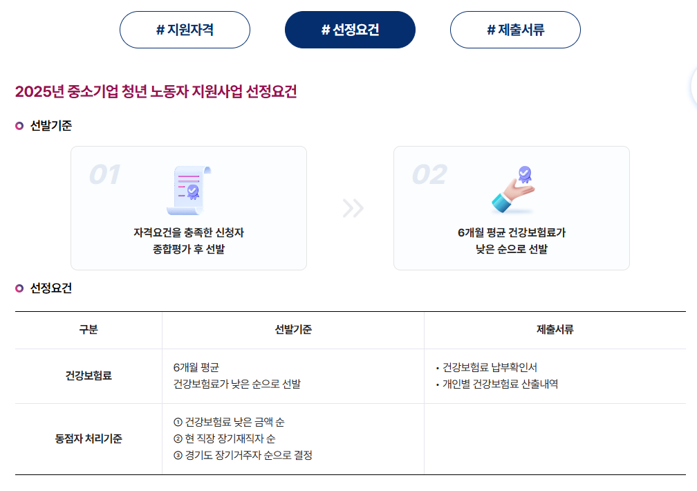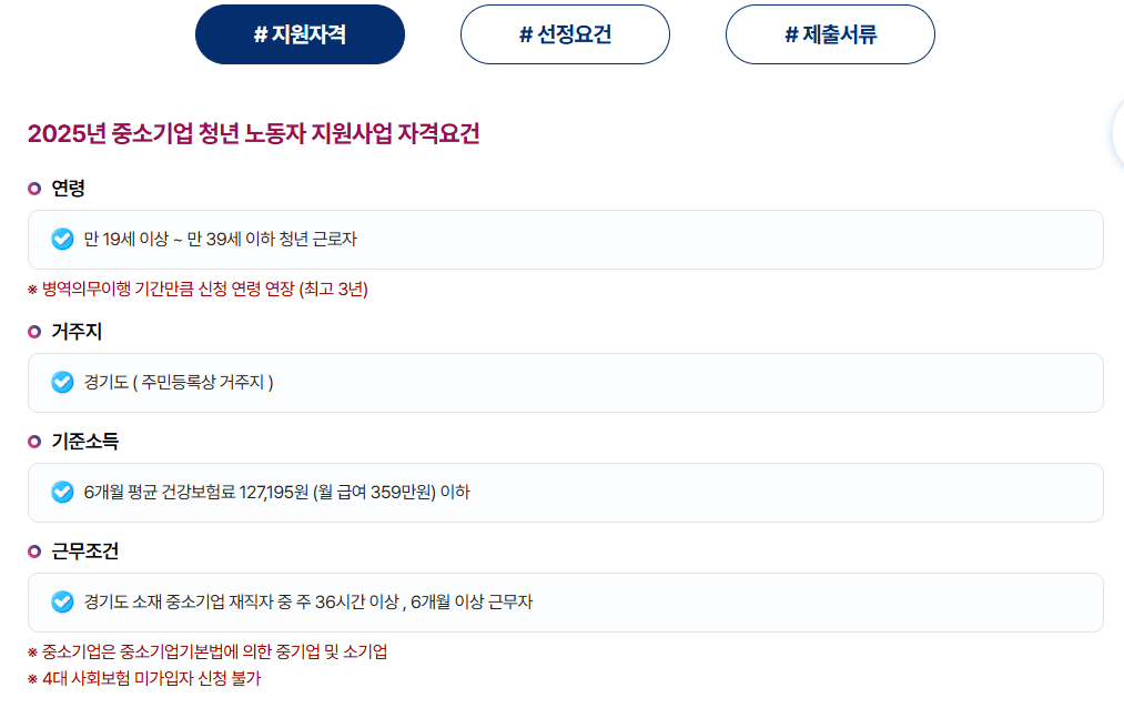💸 중소기업 청년 노동자 지원사업 선정요건
