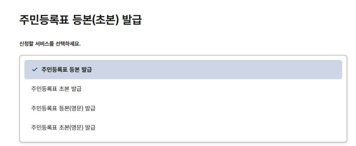 2️⃣ 로그인 후 ‘주민등록등본 발급’ 선택