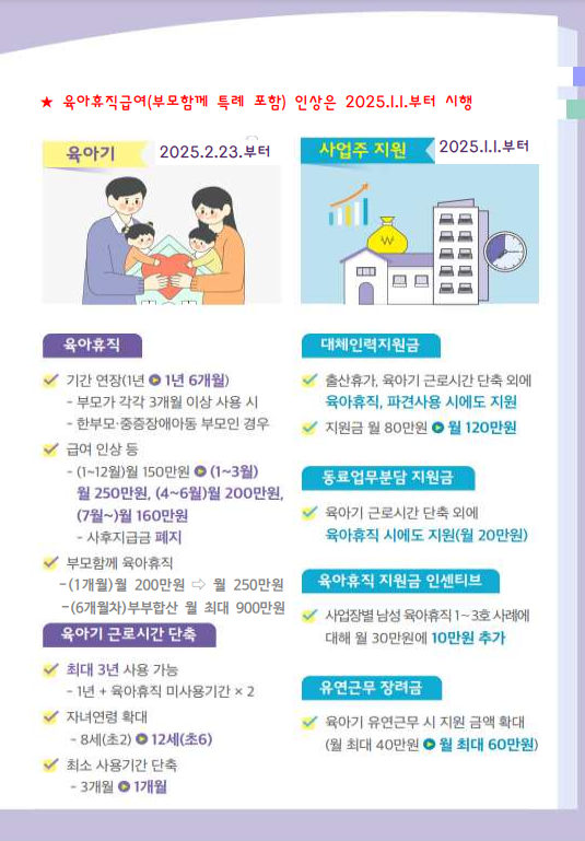 육아휴직 급여 (부모함께 특례 포함) 인상은 2025년 1월 1일부터 시행