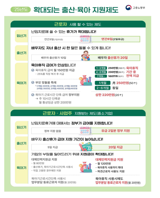 - 배우자 출산휴가급여 : 242억(+158억, 지원기간 5 → 20일 확대)
