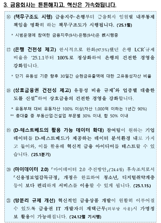 한시적으로 완화했던 은행 LCR규제 비율을 25.1.1부터 100%로 정상화하여 은행의 건전한 경영을 강화됩니다.