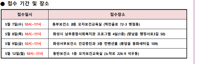 - 문의처 : 화성시 보건소 건강증진팀 (자세한 번호는 하단 참고)