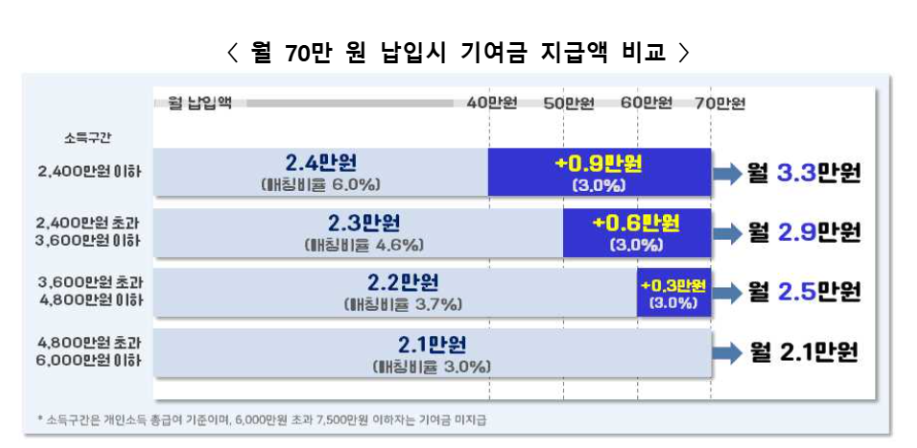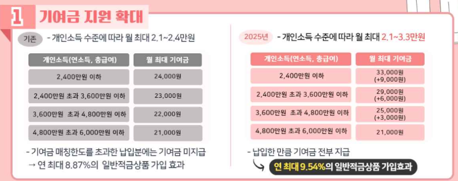 이번에 확대되는 기여금 지원 기준은 25년 1월 납입분부터 적용되며 25년 1월 이전 가입자에게도 적용된다.